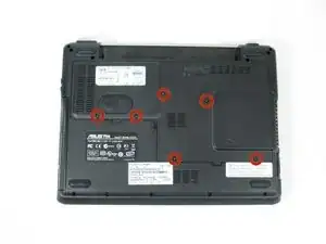 Удалите шесть винтов Phillips #1 размером 1,5 мм на задней панели ноутбука.