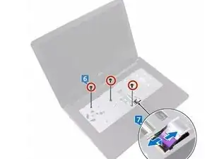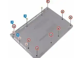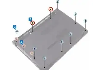 Установите три винта (M2x2), которые фиксируют нижнюю крышку к узлу подставки для рук.