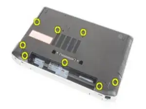 Выкрутите винты, крепящие нижнюю крышку к корпусу компьютера.