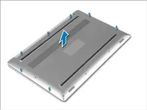 Подденьте края нижней крышки и поднимите ее, чтобы снять с компьютера.