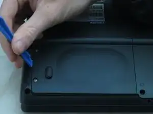 Отделите верхнюю часть корпуса ноутбука от нижней, используя инструмент для вскрытия по бокам корпуса, чтобы поддеть и разомкнуть их.