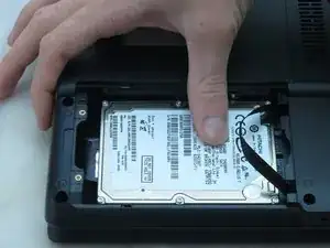 Извлеките жёсткий диск, вставив монтажный инструмент iFixit под правую сторону жёсткого диска и аккуратно поддев его вверх.