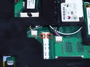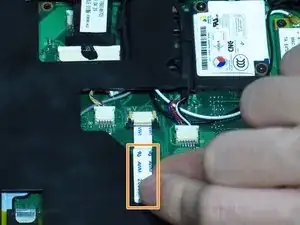 Чтобы извлечь чёрный ленточный кабель из материнской платы, сдвиньте клавиатуру в направлении экрана.