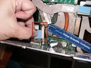 Снимите крышку модема и батареи BIOS. Она фиксирована винтом PH0.