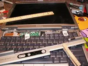 Рамка клавиатуры (верхняя) всё ещё прикреплена к ЖК-экрана.