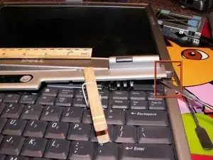 Начните поддевать рамку выключателя питания в правом углу клавиатуры.