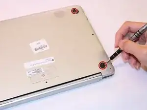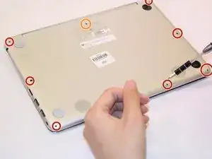 Открутите восемь винтов нижней крышки (один из них находится под резиновой ножкой) с помощью отвёртки с наконечником J1000.