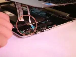 Отсоедините два кабеля от материнской платы с помощью пинцета.