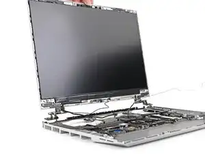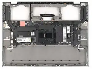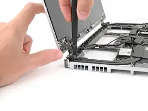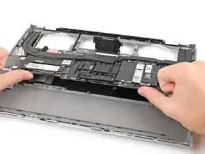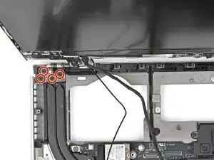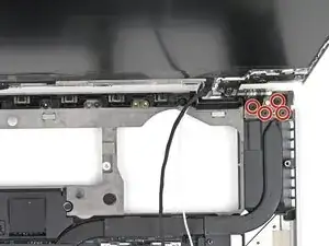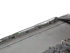 Кабель динамика проходит вдоль нижнего края ноутбука. В следующих трех шагах будет продемонстрировано, как его освободить.
