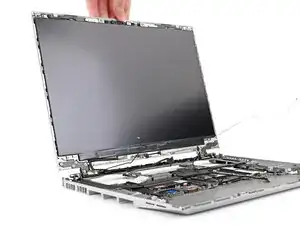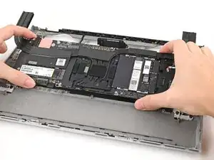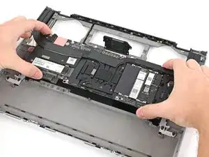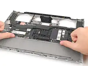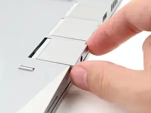 Используйте пальцы, чтобы поднять среднюю пластину и снять ее с ноутбука.