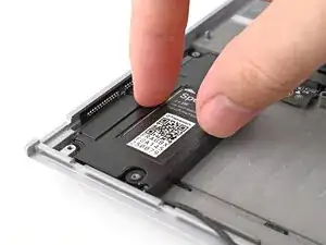 Используйте пальцы, чтобы сдвинуть проставку тачпада к нижнему краю ноутбука и освободить ее.