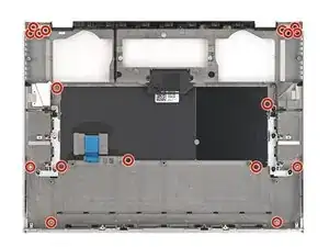 Используйте отвертку Framework, чтобы ослабить 16 фиксированных винтов T5 Torx, удерживающих среднюю пластину.