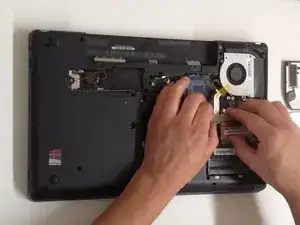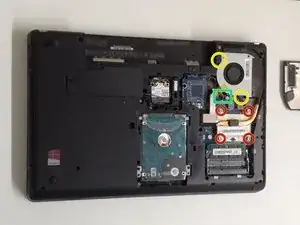 Крышка HDD/Оперативной памяти удерживается 3 винтами Philips. Удалите их.