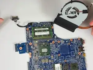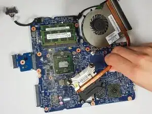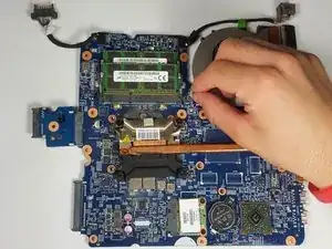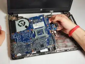 Продолжайте подтягивать материнскую плату вверх и вправо, чтобы полностью отсоединить её от ноутбука.