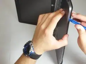 Используя пластиковый инструмент для открывания, медленно и аккуратно отделите верхнюю крышку от нижней рамки.