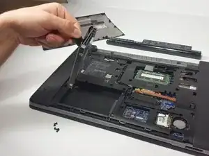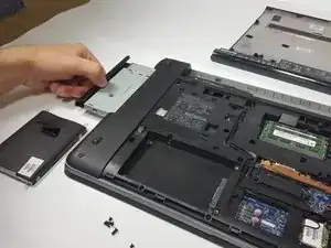 Отвинтите винт 6 мм, который фиксирует оптический привод в компьютере, используя крестообразную отвёртку P0.
