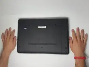 Переверните компьютер так, чтобы он стоял платформой вниз, и вы видели нижнюю часть ноутбука.