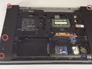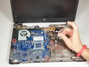 Удалите 3 винта Phillips длиной 4 миллиметра, которыми материнская плата и плата расширения DVD/CD дисковода крепятся к корпусу ноутбука.