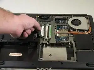 Чтобы извлечь существующие модули памяти: по бокам каждого модуля находятся зажимы. Одновременно отогните зажимы справа и слева, и модуль вспрыгнет вверх. Затем его можно легко вынуть.