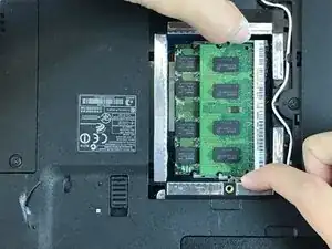 Используя два пальца, наклоните зажимы внутрь, чтобы освободить оперативную память от корпуса.