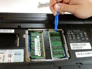 Уклоните оперативную память под углом 45 градусов и вытяните её.