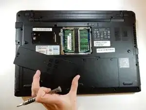 Используйте отвертку Phillips #0, чтобы удалить два винта длиной 0.8 сантиметра с задней крышки.