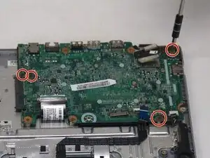 Открутите четыре винта Phillips #1 длиной 6,2 мм, крепящих материнскую плату к корпусу.