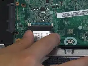 Выдвиньте кабель дисплея горизонтально из разъёма, чтобы отключить его от материнской платы.
