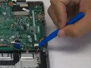 Отсоедините разъём батареи от материнской платы, используя пластиковое раз separation инструмент как рычаг, воздействуя на два небольших пластиковых выступа с обеих сторон разъёма.