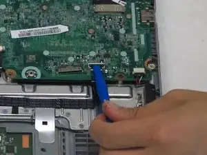 Используя пластиковое раз separation инструмент как рычаг, надавите вниз на инструмент, чтобы приподнять нижнюю крышку.