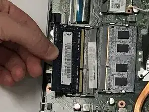 Каждый модуль оперативной памяти будет удерживаться на месте двумя зажимами, расположенными по бокам от каждого модуля. Просто одновременно отожмите оба зажима и аккуратно выньте RAM.