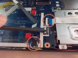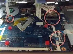 Осторожно приподнимите клавиатуру и отключите три разъёма ленточного типа от плат компьютера.