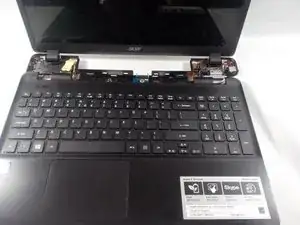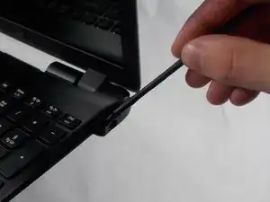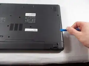 Переверните ноутбук. С помощью лопатки отделите корпус клавиатуры от основания ноутбука.