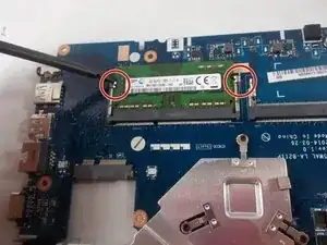 Нажмите на пружинные фиксаторы с обеих сторон планки памяти, она разблокируется и может быть извлечена