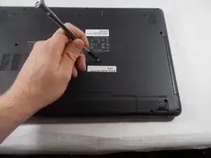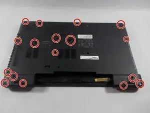 Открутите оставшиеся 17 винтов крестовой отвёрткой №1 на задней стороне ноутбука