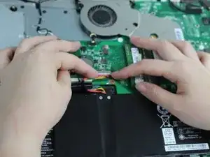 Отключите цветные соединители кабелей от материнской платы. Для этого потяните за провод, чтобы отключить кабель, и извлеките аккумулятор.