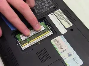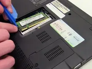 Сделайте пальцем под оперативной памятью и поднимите, чтобы освободить.