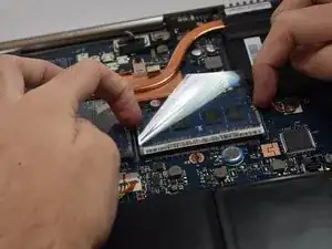 Нажмите на рычаги разблокировки с обеих сторон модуля оперативной памяти.