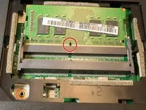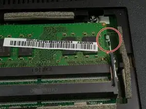 Используйте отвертку Phillips #0, чтобы удалить винт 9 мм в нижнем левом углу крышки отсека оперативной памяти.