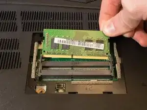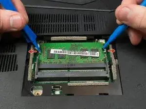 Определите отсек для оперативной памяти на нижней части ноутбука.