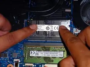 Вдавите планку оперативной памяти вниз, пока не услышите щелчок.