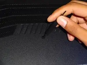 Вставьте пластиковую открывающую лопатку между задней панелью и корпусом ноутбука, чтобы снять заднюю панель.