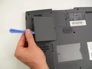Поместите пластиковый инструмент для открытия в зазор, образованный слева от большой крышки.