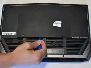 Снимите заднюю панель, используя инструмент для вскрытия iFixit, чтобы отделить её от задней части ноутбука.