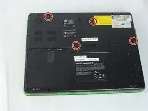 В правом верхнем углу найдите четыре винта, которые крепят заднюю крышку к ноутбуку.