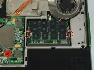 Поднимите заднюю крышку ноутбука, чтобы получить доступ к оперативной памяти.