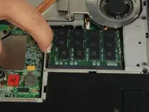 Оттяните левый фиксатор влево, чтобы освободить модуль памяти.