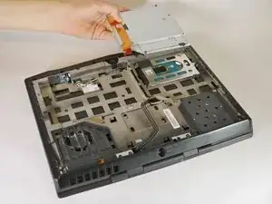 Поднимите оптический привод вверх и извлеките его из ноутбука, убрав в сторону.