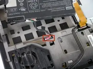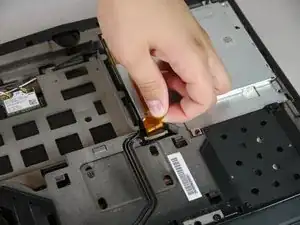 Поднимите белый разъем, чтобы отключить его от ноутбука.