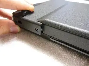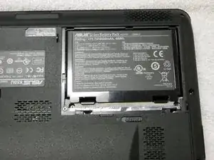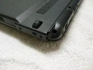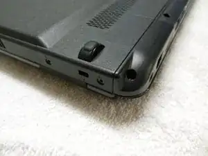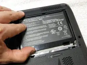 Положите ноутбук задней стороной вверх, отсек для батареи должен быть в правом верхнем углу.